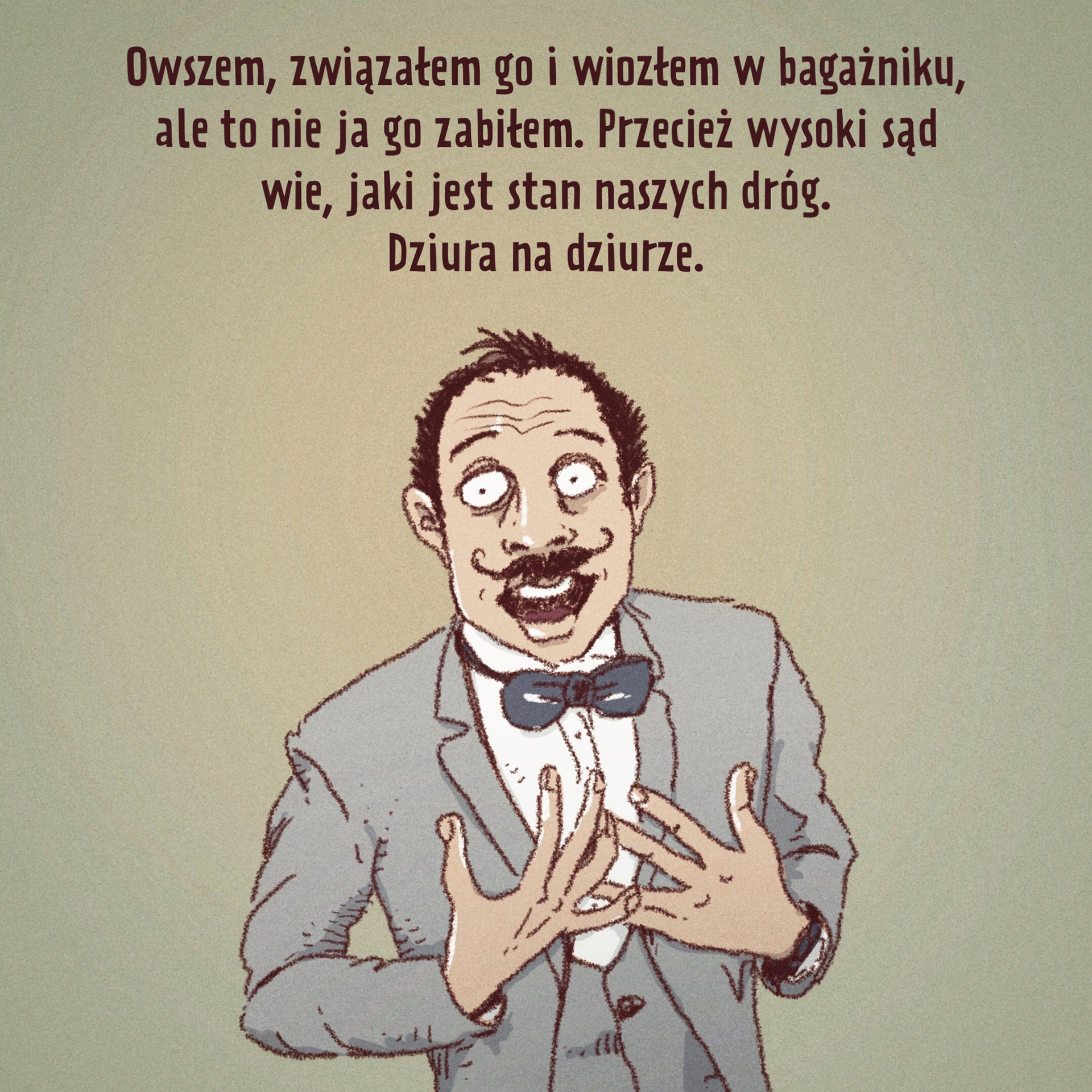 Całość skąpana jest w czarnym humorze i nasiąknięta oparami absurdu.